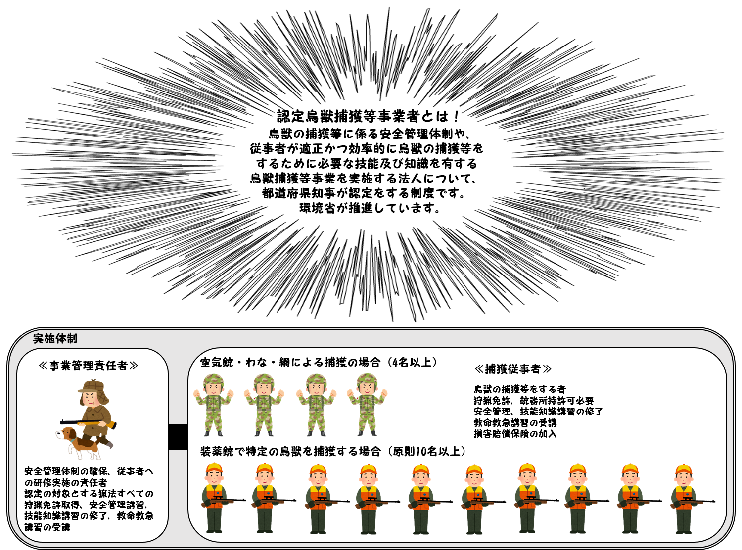 認定鳥獣捕獲等事業者認定で認定を受けた捕獲方法及び対象とする鳥獣の種類