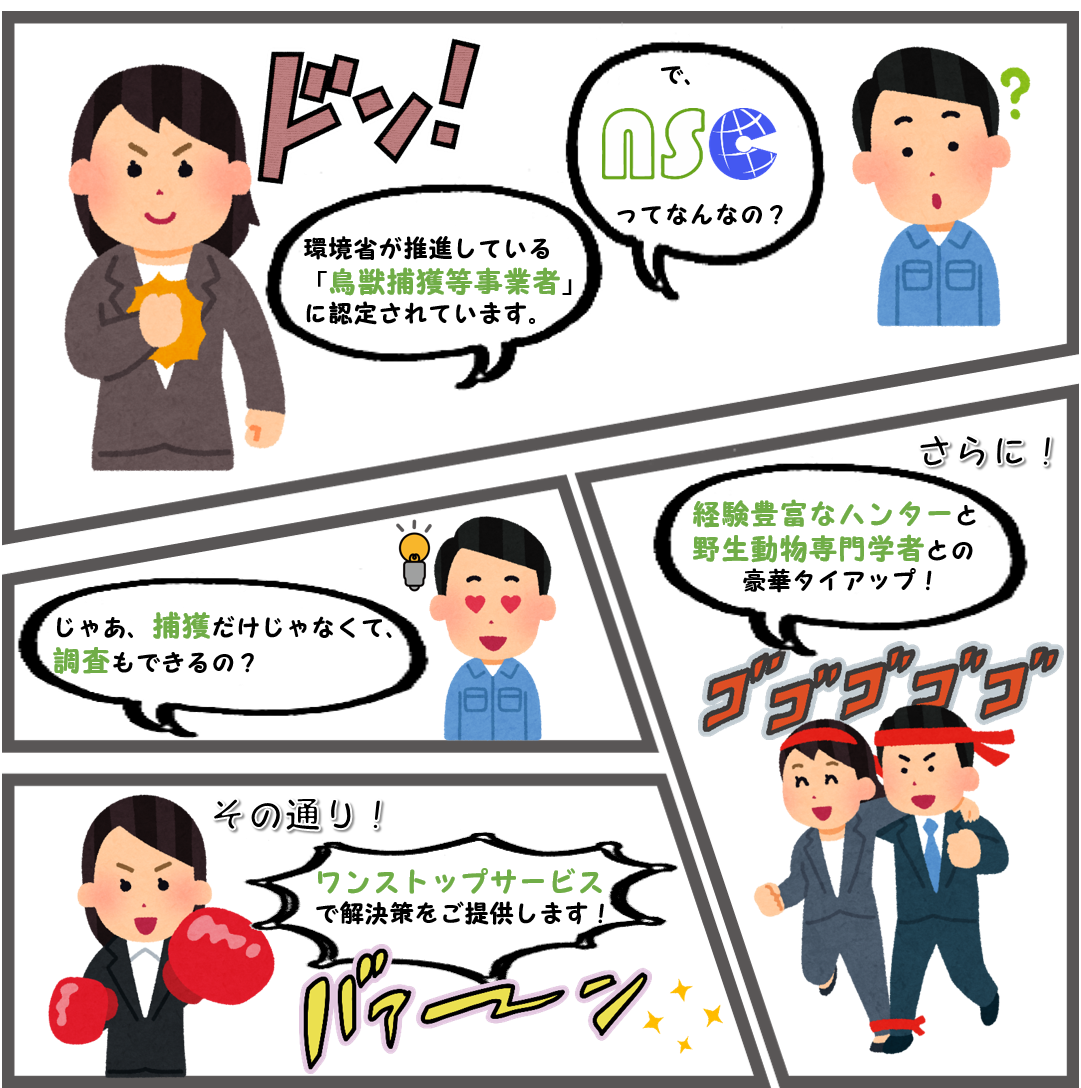 NSCでは、神奈川県から「認定鳥獣捕獲等事業者」として認定(認定証番号:神奈川県 第006号)を受けました。